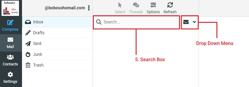 In the Bobosohomail the search option is an amazing feature, If the currently selected task allows searching for data then Enter a search term and press on the keyboard to start searching. To reset the search, click the clear icon on the right border of the search box.