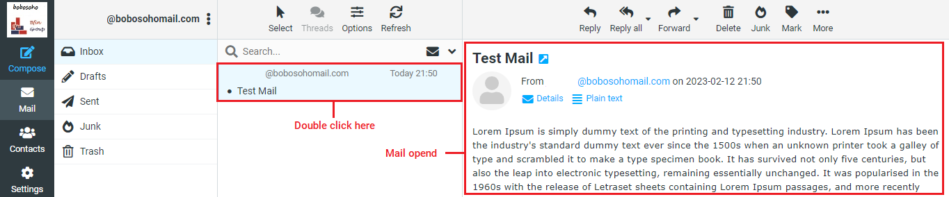 Double-clicking a message in the list opens it in full size or in a new window, The header block now shows all message headers including a photo of the sender if one is found in your address book.